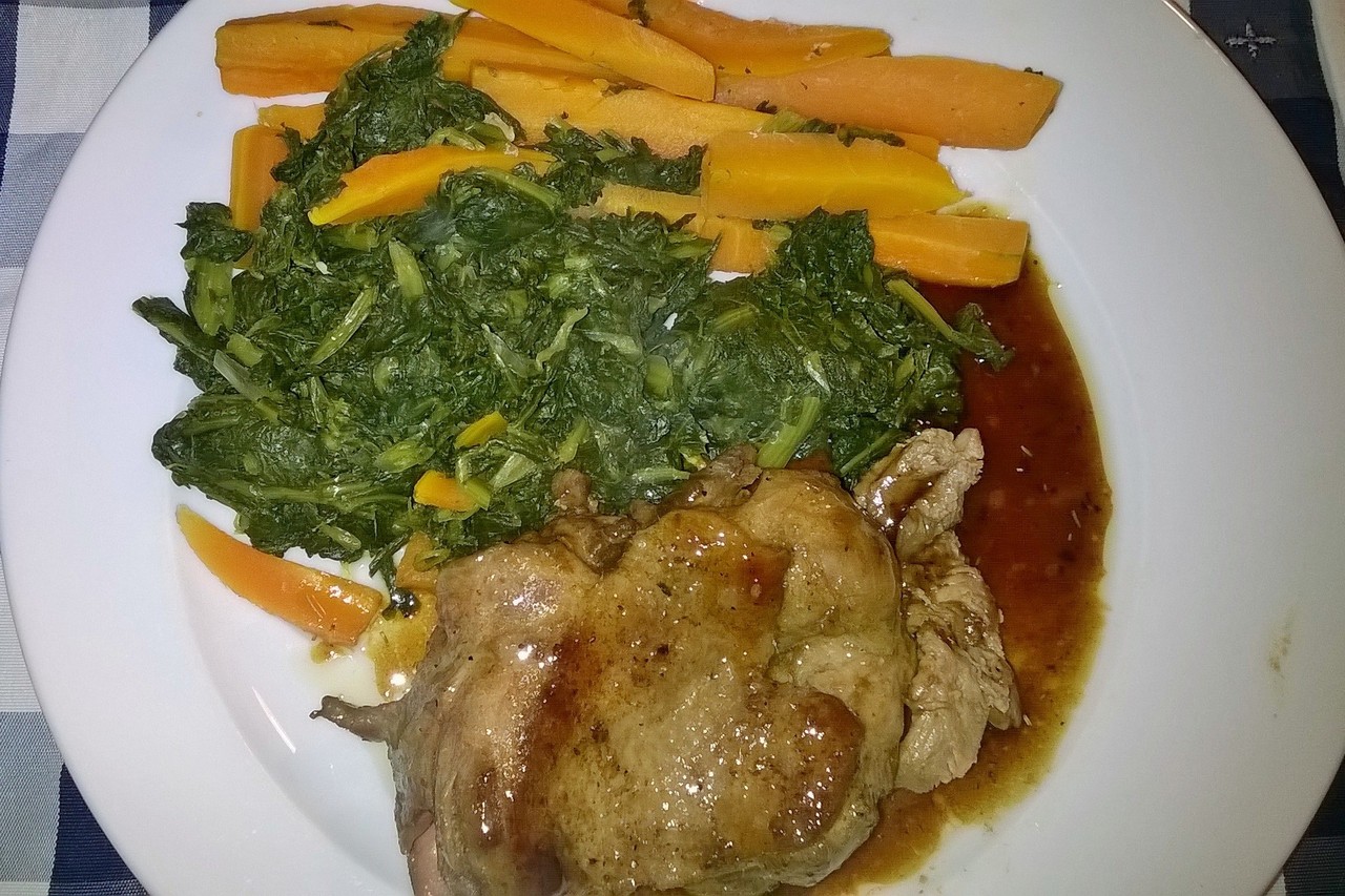 Hello people, Hoje tirei o curso do baú e resolvi fazer um jantarzinho mais sofisticadinho para os 3. Magret de pato com redução de mel e vinagre,molho inglês e alecrim. Claro que para mim substitui as batatas fritas por toneladas de legumes. São servidos?kkkk Bom apetite!