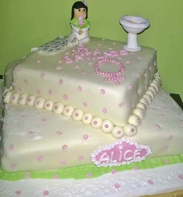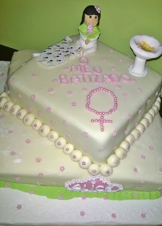 Hello people, No fim de semana que passou voltei aos meus bolos.Uma de muitas coisas que adoro fazer.Este foi um bolo de batizado para a filha de uma amiga minha. Este é o resultado final! E pelo que sei adoraram tudo desde a decoração até ao bolo de chocolate com creme de brigadeiro!
